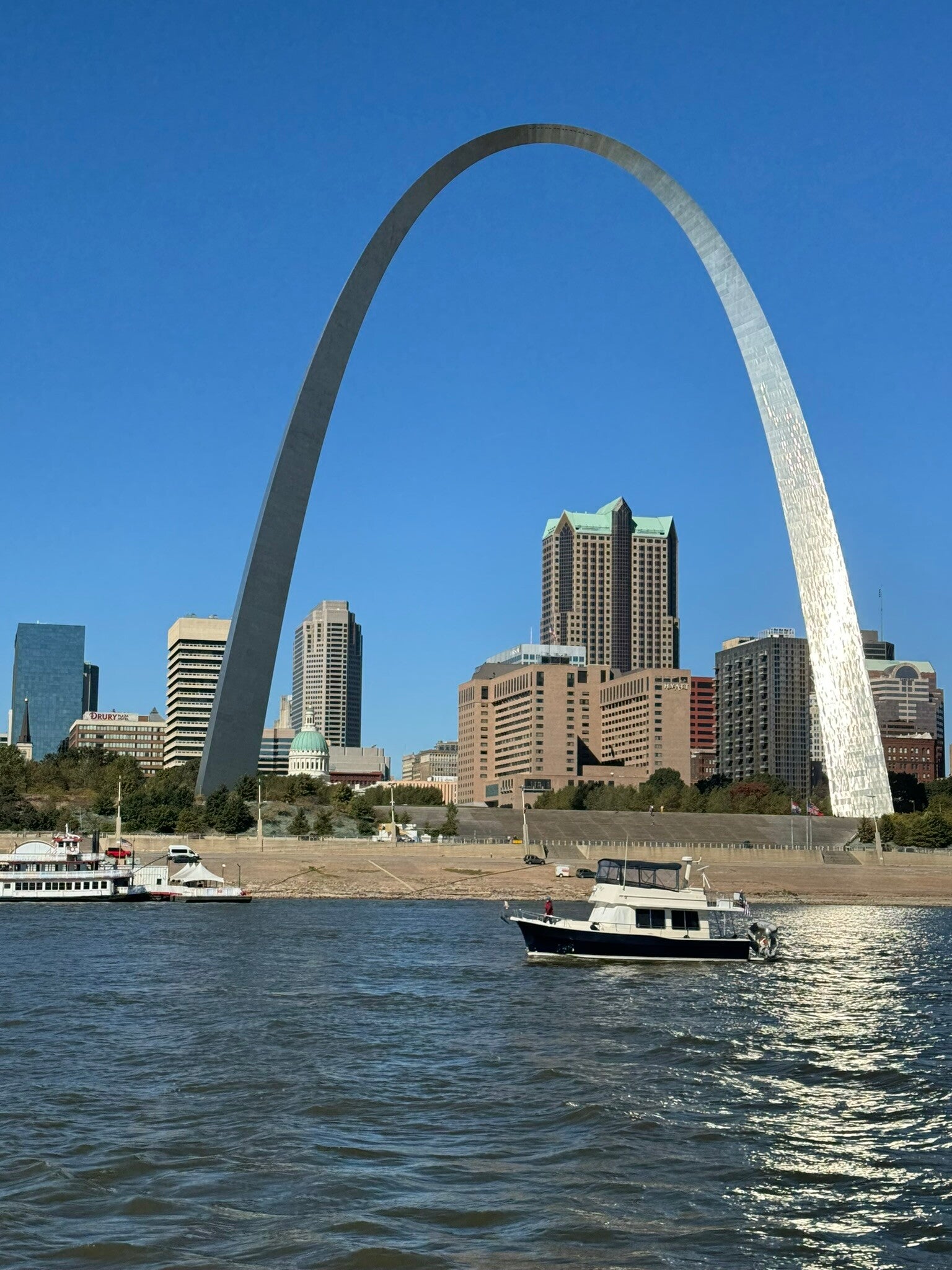 We set out on our Great Loop adventure on March 28, 2024, completing the 4,371-nautical-mile trip in February 2025. The journey took us through 15 states and Canada, navigating 105 locks and passing landmarks such as the Statue of Liberty and the St. Louis Arch. Our route followed the Mississippi, Ohio, Cumberland, Tennessee, and Tenn-Tom rivers to Mobile Bay, then along the Gulf Intracoastal to Apalachicola, across the Gulf of Mexico, and through the Okeechobee Waterway—ending back at our home port in Delray Beach, Florida.